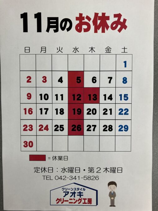 11月は㊗️が2日あります 営業時間のご案内 日曜日と祝…