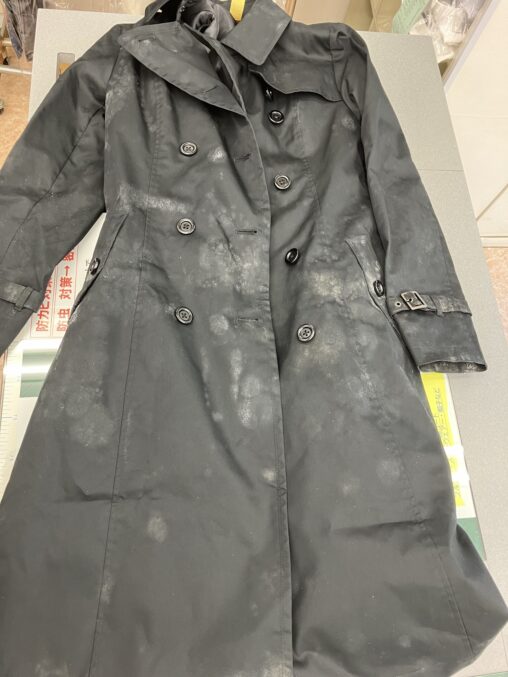カシミヤコートに赤ワイン ⬇️ ビフォー ①採寸 ②しみ…
