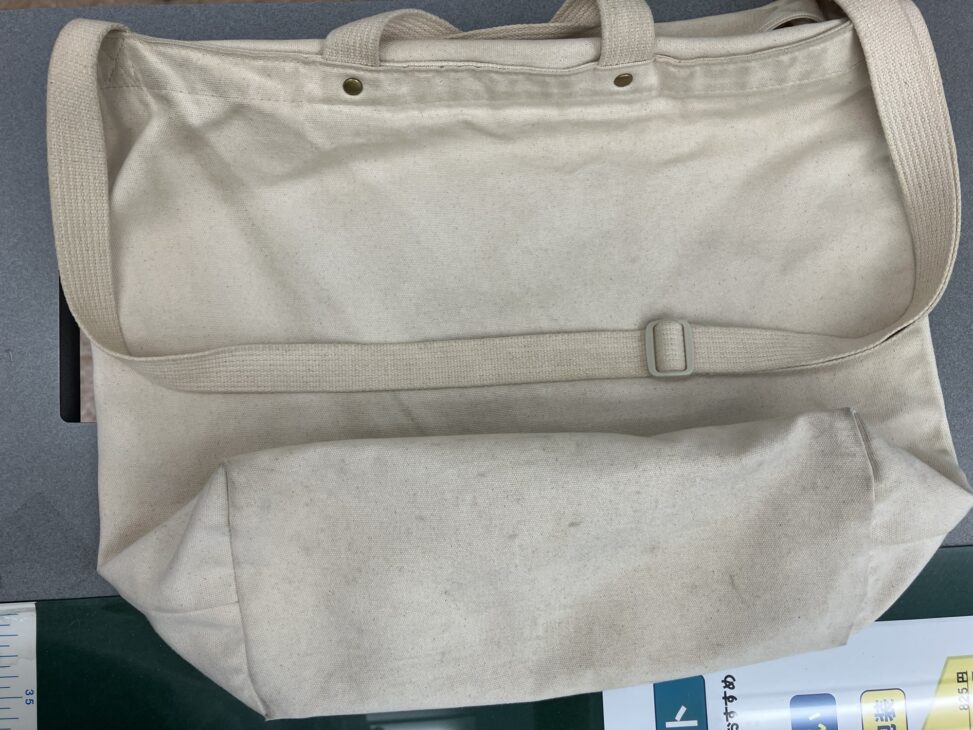 バッグクリーニング コットン素材の布バッグです 底部を中心に全体的に 染み込んだ汚れが目立っています ⬇️ ビフォー 採寸して 部分的にしみ抜き 高温で全体漂白 汚れ予防に撥水加工 収縮した分だけ寸法の復元 完了 ⬇️ アフター 2026年2月17日 投稿先 before after, 特殊品 ← 過去の投稿へ 次の投稿へ →